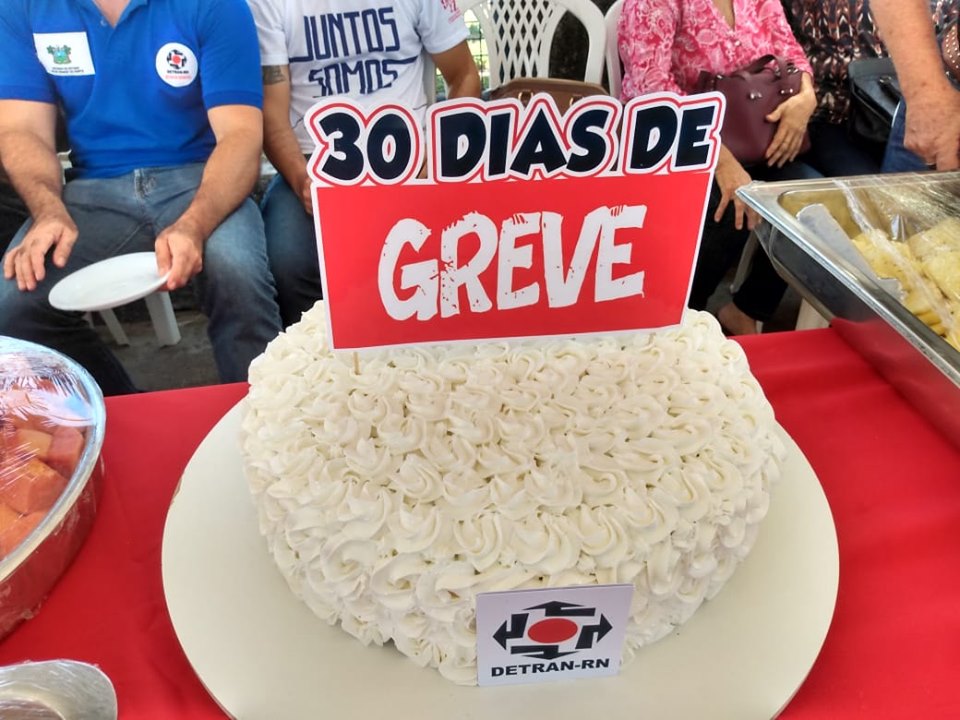Com bolo, trabalhadores do DETRAN “comemoram” 1 mês de greve durante piquete
