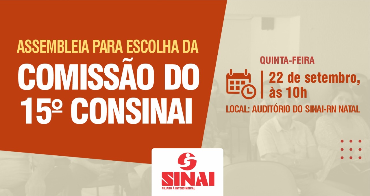 No próximo dia 22 de setembro, em Assembleia, será eleita a Comissão do 15º CONSINAI. O encontro acontecerá a partir das 10h, no auditório da sede estadual do SINAI-RN, em Natal.