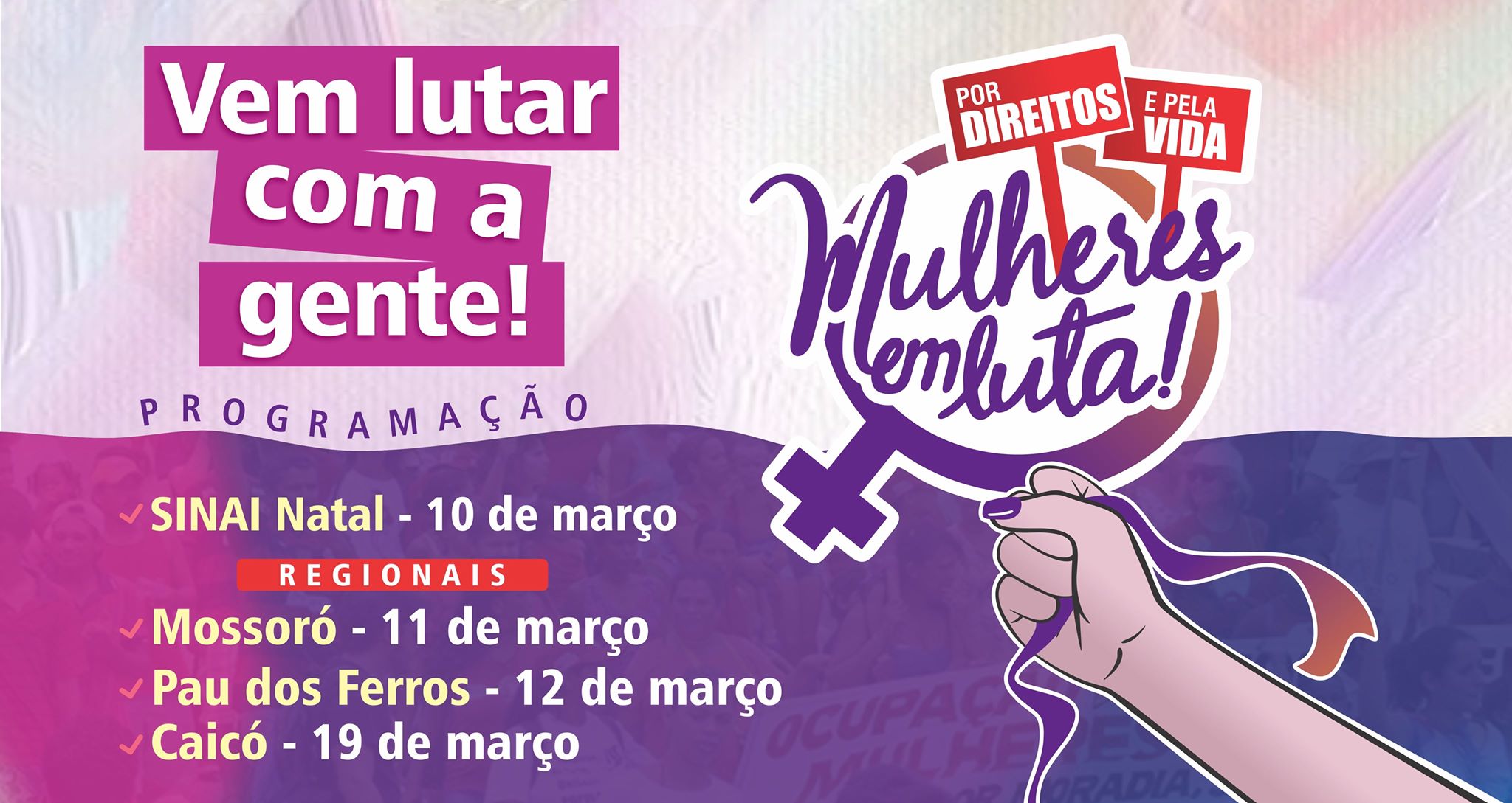 O Dia Internacional da Mulher será marcado com diálogos promovidos pelo SINAI-RN na sede estadual e nas três regionais da entidade. Acompanhe a programação da semana feita especialmente para as mulheres do SINAI.