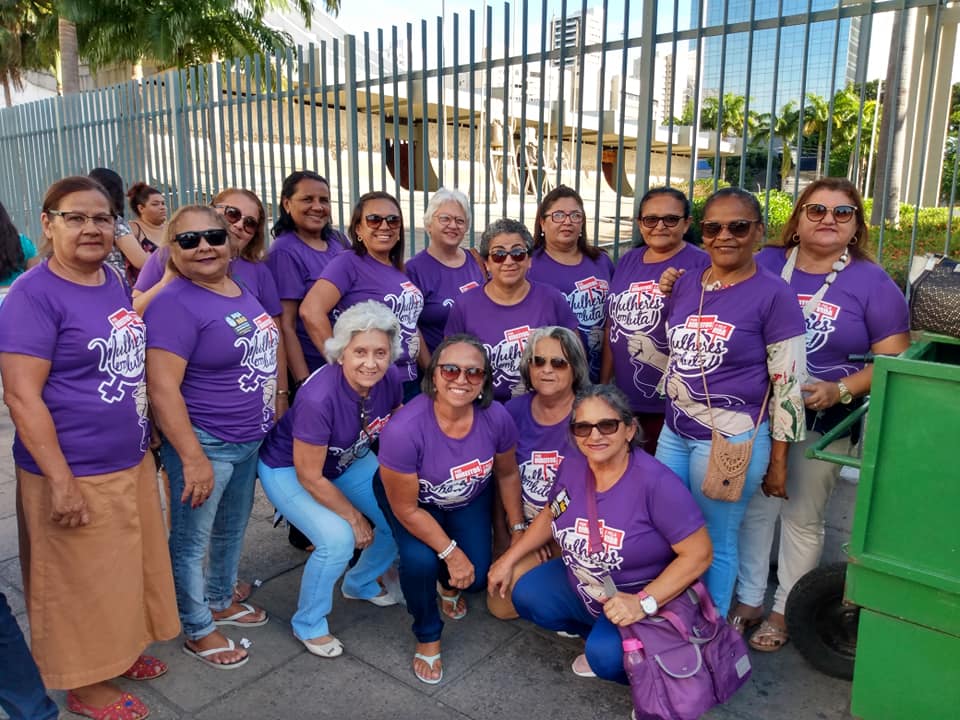 Trajadas com uma camiseta produzida para a ocasião que trazia o lema “Por direitos e pela vida, mulheres em luta”, as mulheres do SINAI se somaram as demais nas pautas abordadas. Elas rechaçaram as práticas machistas, pediram o fim da violência contra a mulher, justiça no caso Marielle e liberdade ao próprio corto. No âmbito local, criticaram o projeto da Reforma da Previdência Estadual proposto pelo Governo.