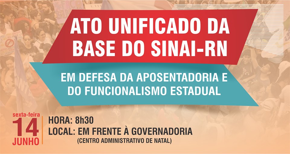 Dentro das atividades da Greve Geral contra a Reforma da Previdência, o SINAI-RN realizará um ato voltado para sua base. A atividade será realizada nesta sexta-feira (14) a partir das 8h30 com concentração em frente à Governadoria, no Centro Administrativo de Natal.