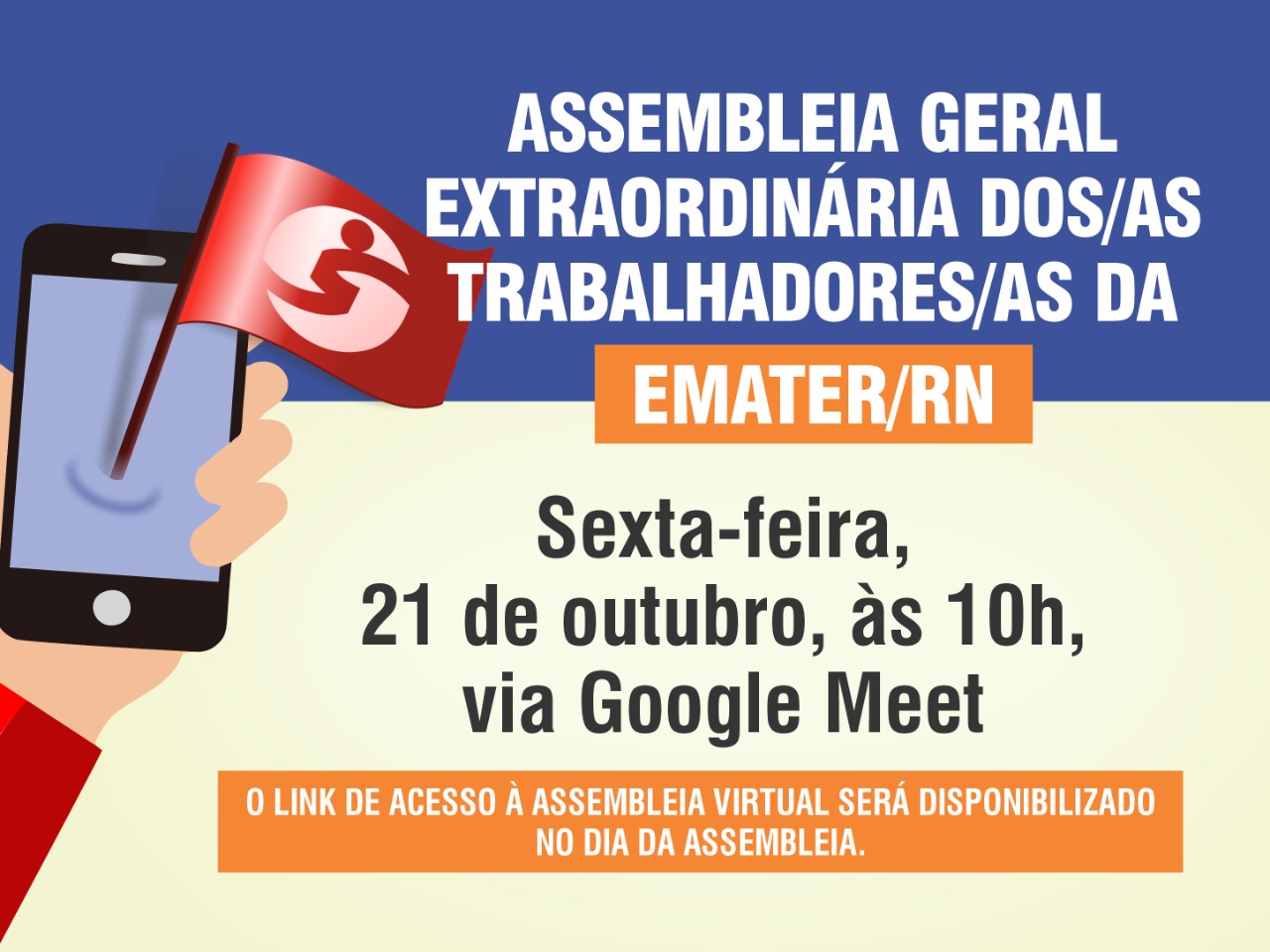 Uma discussão acerca da continuidade da suspensão ou encerramento da greve dos trabalhadores da EMATER vão pautar a Assembleia virtual convocada pelo SINAI-RN para esta sexta-feira (21). O encontro começa às 10h, via Google Meet. O link de acesso à sala será disponibilizado na data.
