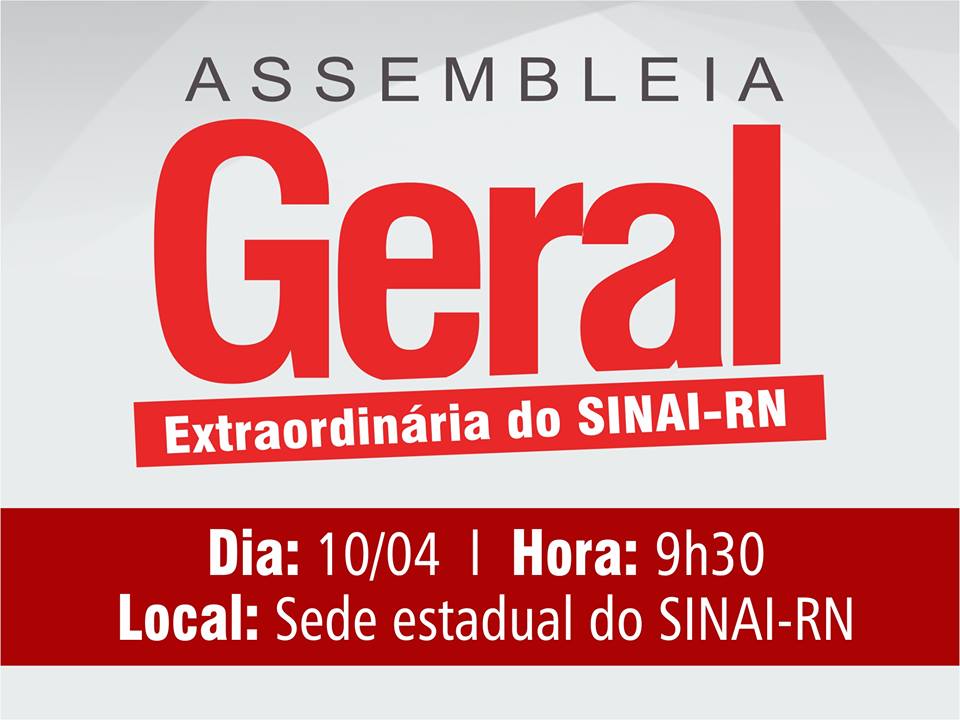 A organização das eleições do SINAI-RN será o tema da Assembleia Geral Extraordinária convocada pela direção do Sindicato. O encontro está marcado para 10 de abril, às 9h30, na sede estadual do SINAI, e toda a base do Sindicato está sendo convocada a participar.
