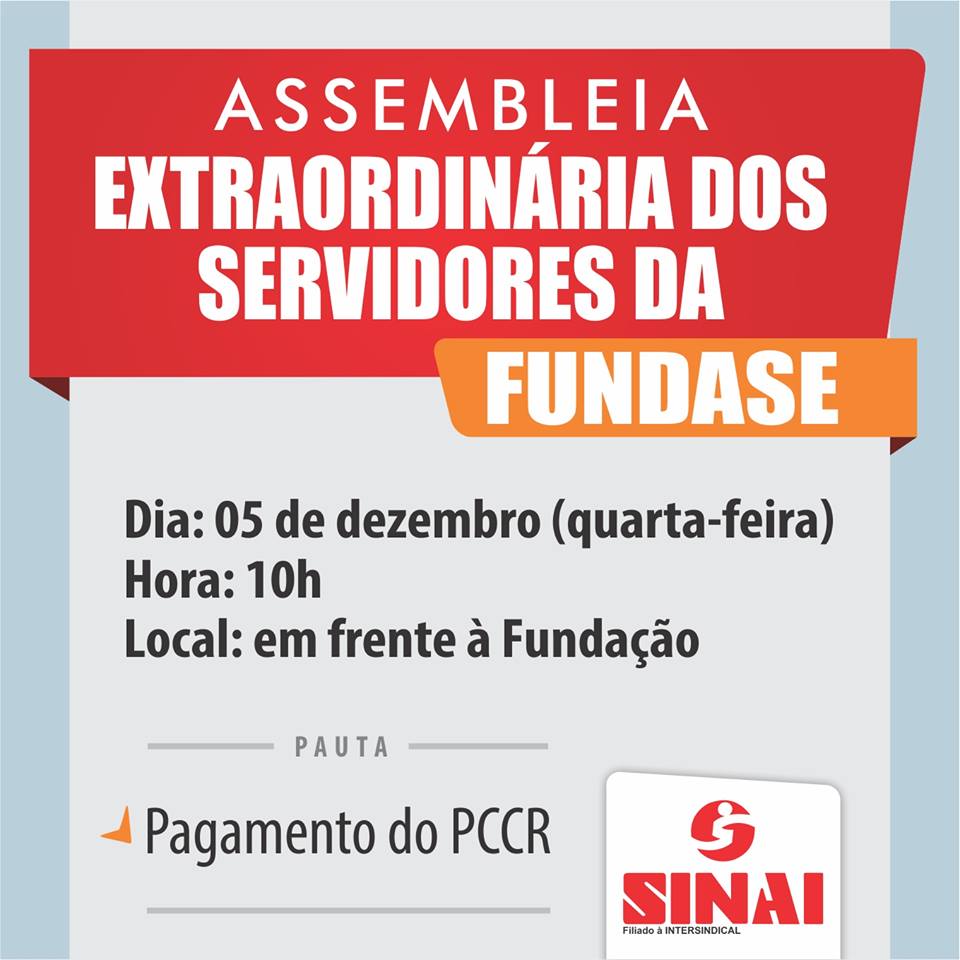 O SINAI-RN está convocando uma assembleia extraordinária dos servidores da FUNDASE. A assembleia acontece nesta quarta-feira (05), às 10h, em frente à Fundação.