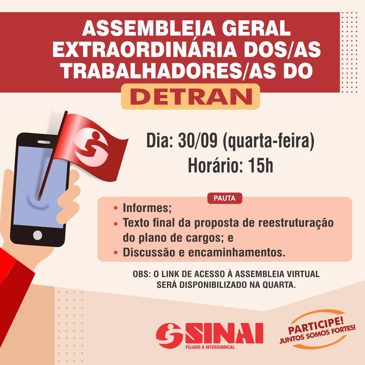 O SINAI-RN convoca os trabalhadores e trabalhadoras do DETRAN/RN para uma Assembleia Geral Extraordinária.