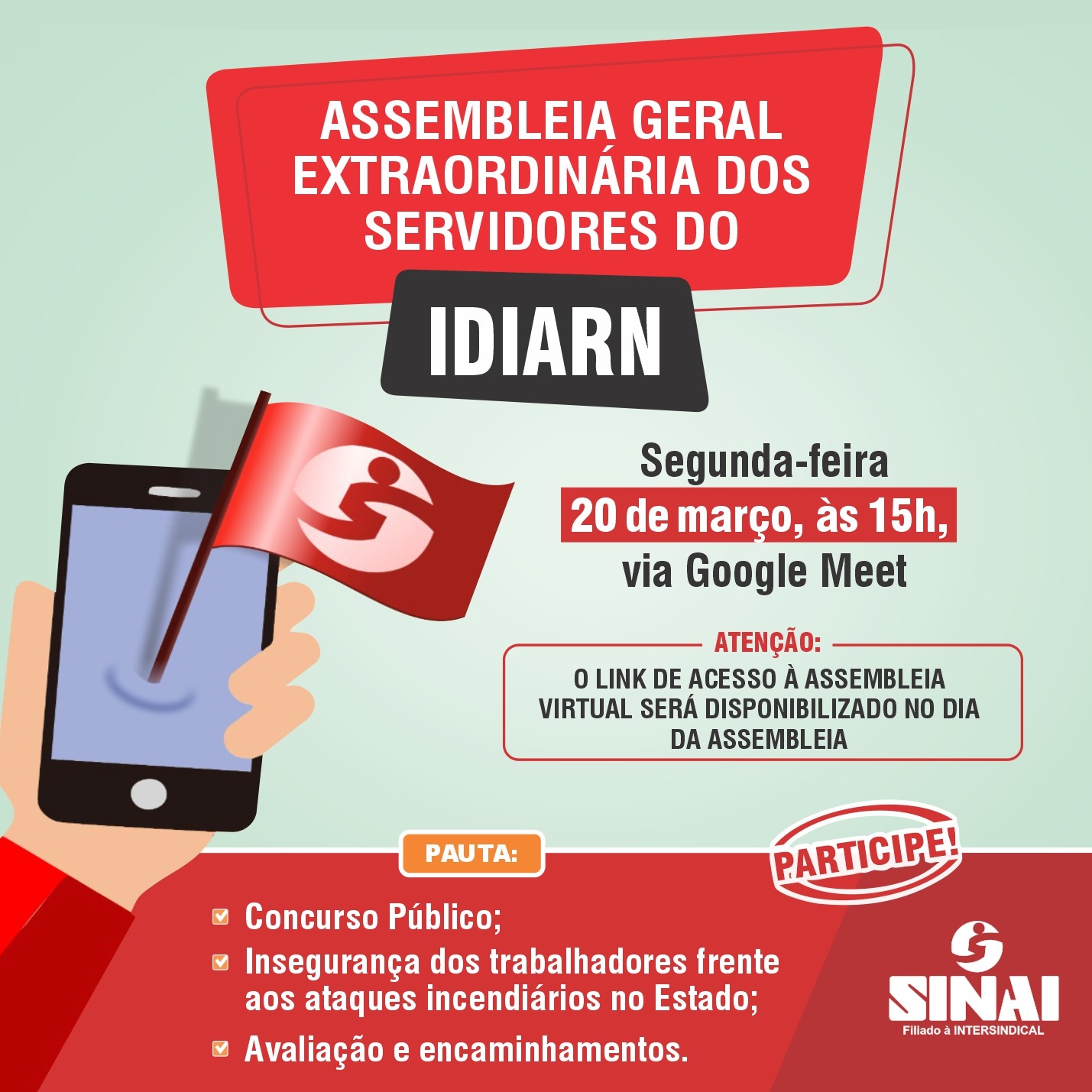O atual clima de insegurança no Rio Grande do Norte alterou a data e o formato da atividade. Inicialmente, a Assembleia dos servidores do IDIARN aconteceria na quarta-feira (15), de forma presencial.